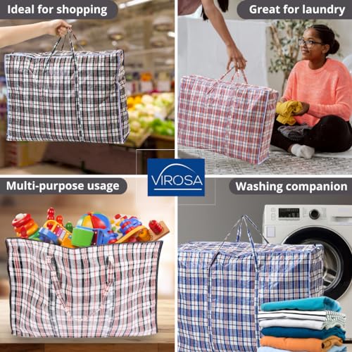 10 PACK VIROSA Extra Value Large Strong and Durable Laundry Bags 60 X 50CM | Ideal for Laundry/Moving House/Shopping/Storage | Reusable Jumbo Zip Bags (One Size, 10, count)