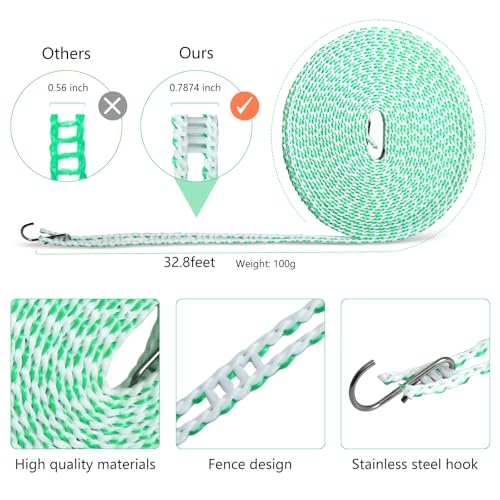 - 10m/ 32.8ft Windproof Non-Slip Clothesline, Rope for Hanging Clothes Portable Clothes Line with PE Material, Clothes Drying Rope for Outdoor Camping Travel Hanger or Home Use (Green White)