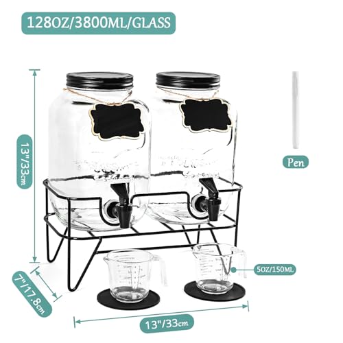 128OZ Laundry Detergent Dispenser BY VEGEVIGI, Glass Liquid Laundry Soap Dispenser, 2 Pack Fabric Softener Organizer