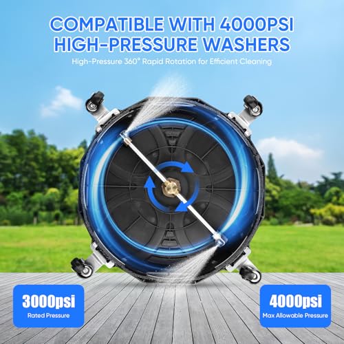 - 【13 "Pressure Washer】: The surface cleaner provides a 13-inch wide commercial-grade cleaning area. The hover action makes surface cleaning faster and more efficient than using the nozzle alone, saving you time. It is suitable for cleaning stubborn stains on large flat surfaces, such as patios, driveways, decks, sidewalks, etc.