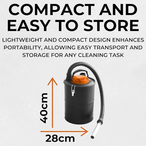 - STURDY CYLINDER VACUUM CLEANER: Built with a durable metal body, this ash vacuum cleaner is engineered for exceptional strength and heat resistance, making it ideal for cleaning cold ashes. This Ash-Vac is compact and lightweight for easy transportation and convenient storage, perfect for users with limited space.