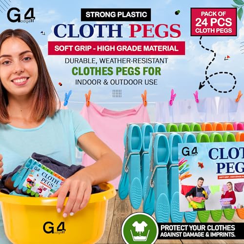 G4GADGET Clothes Pegs 24 Pack – Strong Grip Plastic Pegs for Washing Line, Durable Laundry Clips for Clothes, Rust-Resistant for Outdoor & Indoor Drying