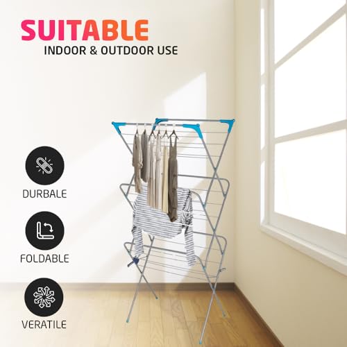 1ABOVE Premium Quality, Alloy Steel 3 Tier Clothes Airer Dryer Laundry Drying Washing Line Horse Indoor Outdoor Towel Rack-15m Drying Space- Non-Slip Feet and Corner spaces for Hangers
