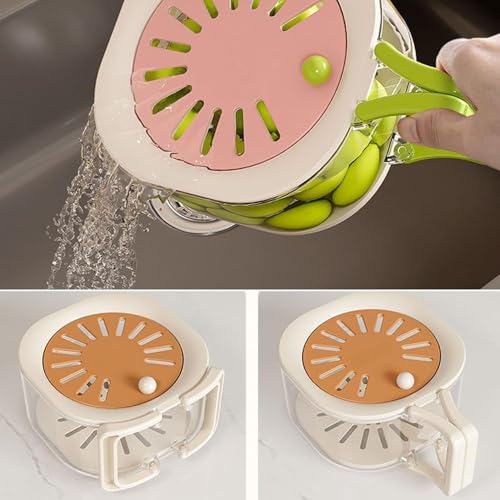 • 【Rotating Lid Mechanism】 Our fruit colander kitchen gadget comes with an innovative rotating lid that can be easily opened or closed with a simple push. This smart feature prevents food from falling out during washing, ensuring a thorough clean while containing water splashes.