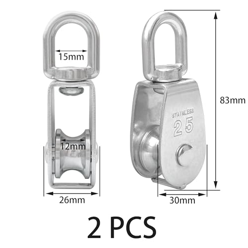 - 【Rotatable Design】: The stainless steel pulleys can rotate 360 degrees, effectively preventing ropes from tangling during use.