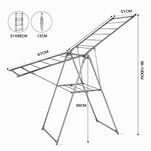 • ★Practical and stable drying rack:consisting of 2 foldable wings adjustable in height,ideal to hang also long clothing.The lower compartment is ideal for hanging small pieces of garments (such as underwear, socks, children's clothes, etc.)