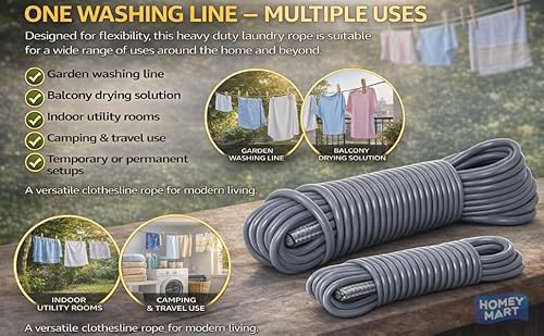 - 🧺☀️ VERSATILE INDOOR & OUTDOOR USE: Whether you’re setting up a traditional garden line, a rotary dryer replacement, or an indoor drying room, this 25m rope provides ample length and flexibility for any space.