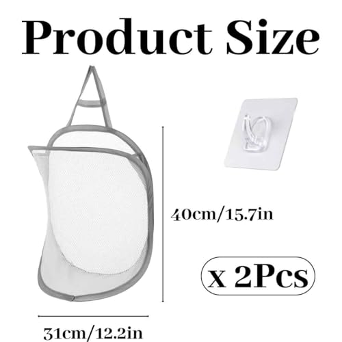 2Pcs Hanging Laundry Bag, Mesh Laundry Baskets, Pop Up and Collapsible Washing Bag with 2 Hooks(Grey and White)