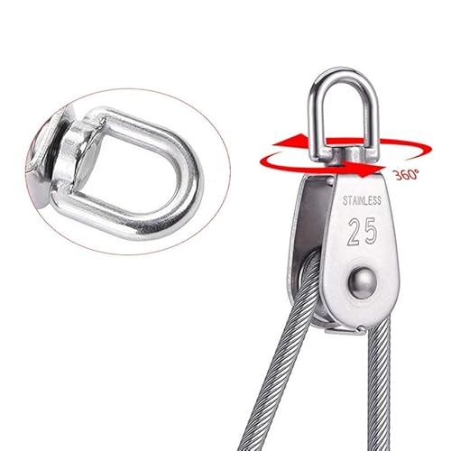 2Pcs M25 Single Pulley Block 304 Stainless Steel Swivel Cable Pulleys for Lifting/Hanging, Heavy Duty Rope Single Wheel Kit, Max-Load 150kg/330lbs