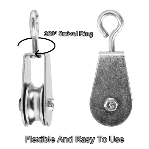 - Strong load-bearing Capacity: Each M25 Single Pulley Block has a load-bearing capacity of 30kg, 360 Degrees Swivel Pulley Block has high strength, good stability performance, smooth sliding function and ultra-sturdy structure, which can help you use it with rope/cord/wire indoors and outdoors to lift, transfer or haul items easily.