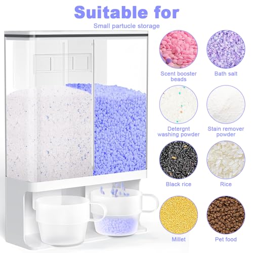 3L Washing Powder Storage,Laundry Storage with 2 Cups,Wall-Mounted Double Laundry Detergent Dispenser,Washing Powder Laundry Containers with Lids for Fairy Scent Booster Beads,Rice,Cereal,Grain,Food