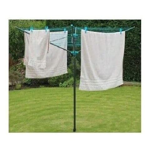 4 Arm Rotary Airer – 40m PVC Coated Washing Line Ground Socket Clothes Dryer with Foldable Arms