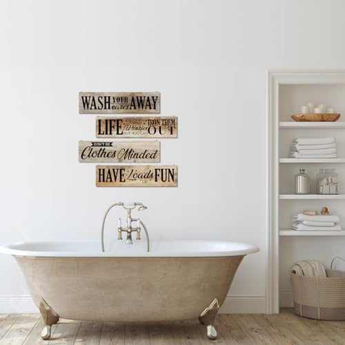 4 Pcs Laundry Room Decors, Four Pieces Hanging Wall Plaques, Funny Laundry Room Wall Art, Farmhouse Laudry Quotes Sign, Wall Decor Art, Wash Away – Life Out – Clothes Minded – Have Loads of Fun Sign J