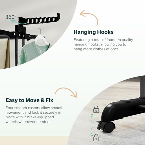 • EASY MOVEMENT WITH ADDED STABILITY: Moving our indoor clothes dryer is effortless with its 4 smooth-rolling castor wheels; If you want the drying rack to stay put, you can easily lock the 360° rotating wheels in place