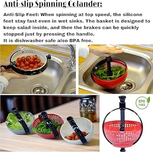 - 3. Storage is a breeze with this ingenious salad spinner. It features a collapsible handle that folds down effortlessly, allowing you to tuck it away neatly in your kitchen cabinet or drawer. No more bulky salad spinners taking up valuable counter space. It's like having a salad spinner that knows how to keep things organized!