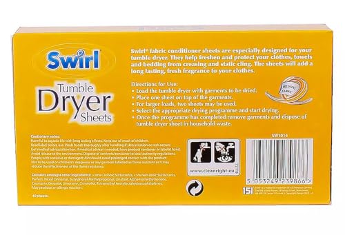 • Swirl Tumble Dryer Sheets help freshen and protect clothes, towels and bedding from creasing and static cling