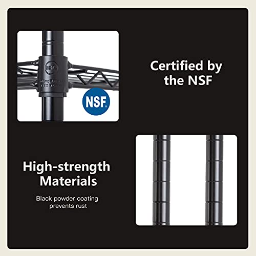 BestOffice 5 Tier Adjustable Wire Shelving Unit,Commercial Metal Shelf with Strong Steel for Restaurant Garage Pantry Kitchen Garage,Black