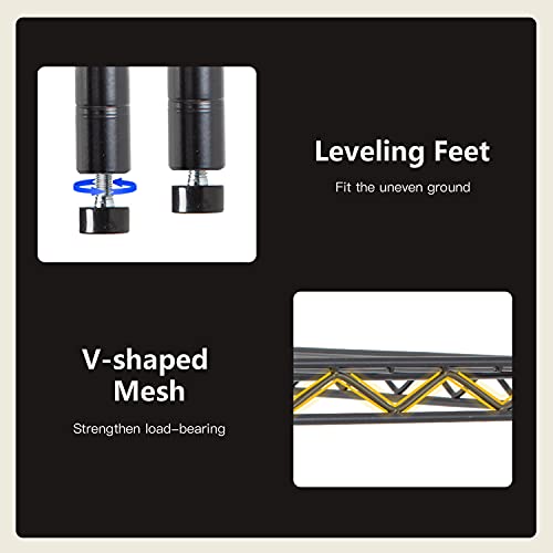 • √【ADJUSTABLE】: You can adjust the height of the storage shelves according to the size of the item.The spacing of each layer of this wire shelf can be adjusted.shelves adjustable leveling feet allow the wire shelving unit to be placed on uneven ground–a simple twist is all it takes to stabilize.storage shelves wire shelf wire shelving unit.