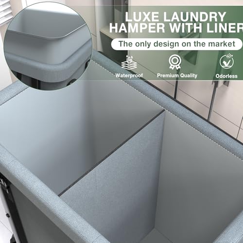 50 Gal(190L) High Grade Large Laundry Basket with Wheels, Rolling Laundry Hamper, Laundry Cart with Metal Frame and Removable Bag Design, Suitable for Laundry Room, Bedroom (Grey, 2 Section 190L)
