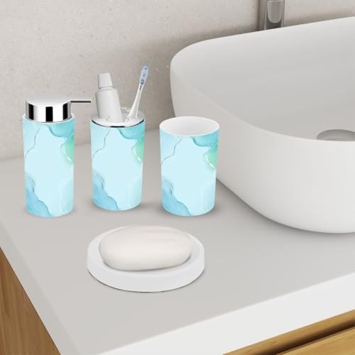6 Piece Bathroom Accessories Set Abstract turquoise teal blue liquid marbled watercolour with Bathroom Bin, Toilet Brush, Soap Dispenser, Toothbrush Holder, Cup, Soap Dish Set