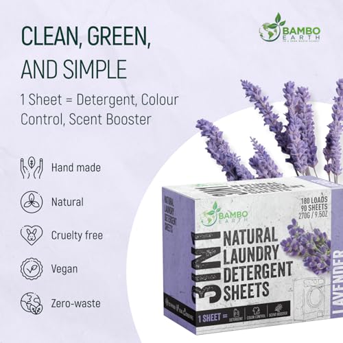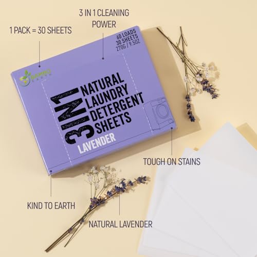 60 Loads Natural Laundry Detergent Sheets – All Natural Biodegradable And Dissolvable Washing Machine Dry Soap Laundry Detergent Strips, Mess Free, Eco Friendly, 30 Sheet Pack (Calm Lavender)