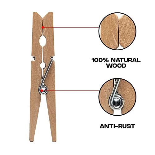 - ⛺👕☀💨 STRONG GRIP & DURABLE PEGS – These pegs can hold clothes tightly on the washing line even on a windy day and wooden clothes pegs prevent discoloration that could otherwise create stains on light-coloured clothing