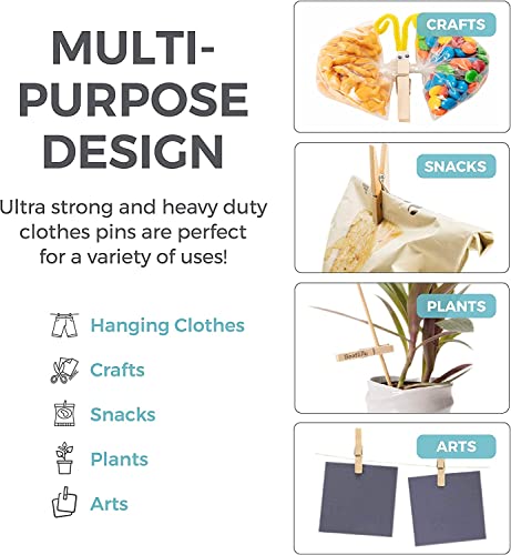 - ⛺👕☀💨 𝐖IDE APPLICATION – These eco-friendly wooden pegs are multipurpose and are a great choice for crafting school projects, laundry, drying & Hanging cloth, snack bag sealing, phone holder, card holder, photos hangers and in DIY projects etc
