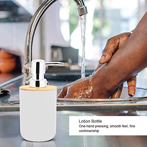 6Pcs Ceramic Bathroom Accessory Set, Bamboo Bathroom Accessories Toilet Tools Set, Trash Can Lotion Bottle Soap Tray Tooth Brush Toilet Brush with Holder Cup Set PP Plastic and Bamboo(White)