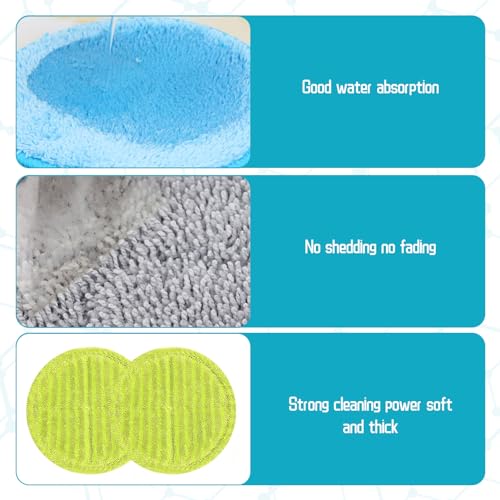 6PCS Floating Mop Pads – Absorbent Wet Dry Floor Cleaning for Hardwood Laminate (Green+Blue+Grey)