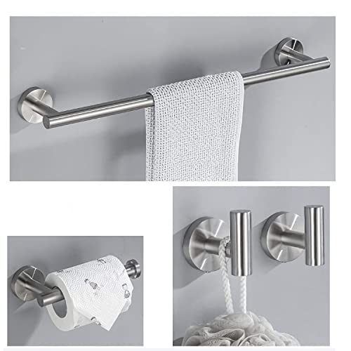 - Upgrade your bathroom with our premium Towel Bar Set, featuring a Towel Bar, Toilet Paper Holder, Towel Ring, and 4 Hooks. Each component includes all necessary hardware for easy installation. Enjoy a sleek, seamless look with concealed screws for a tidy appearance. Perfect for enhancing any Bathroom Décor while ensuring practicality and style.
