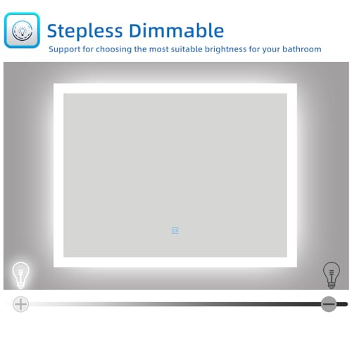 - Adjust the brightness from 10% to 100% just by touching the screen button, bathroom led mirror save your lighting settings instead of adjusting every time