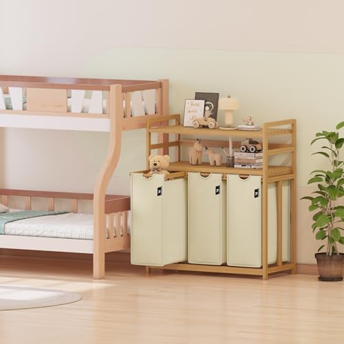AdelDream Laundry Basket 150 L 3 Compartments 2 Shelves Extendable and Removable Laundry Bag Laundry Hamper Bamboo Frame Laundry Box Laundry Baskets Laundry Sorter Bamboo Beige
