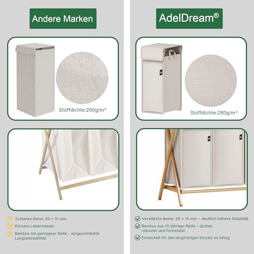 - AdelDream Foldable laundry baskets: AdelDream relies on natural raw materials and is popular with customers all over Europe, thanks to the breathable laundry bag, it will never smell musty in your laundry room again.