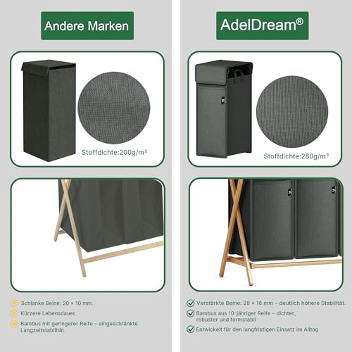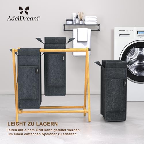 AdelDream Laundry Hamper 3 Compartments Bamboo Laundry Hamper Laundry Sorting System X-Shaped Laundry Baskets Laundry Sorter 150L Gray