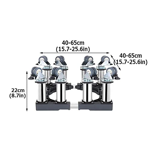 - Washing Machine Base Holder Bracket [Durable Construction]: The pipes of fridge base stand is constructed of strong stainless steel, Thickened polypropylene panel, 4/8/12 Stainless Steel legs wheels, which makes it more stable and durable, anti- corrosion & anti-rust. The load capacity: 4 wheels:150kg; 8 wheels: 200kg; 12 wheels: 250kg.