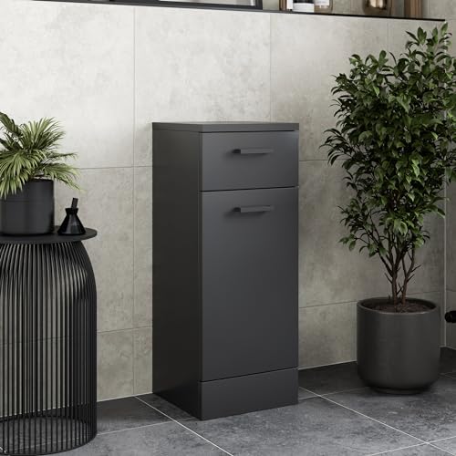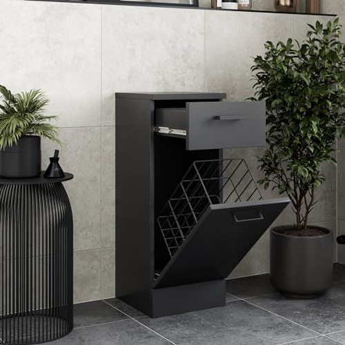 Affine Black Bathroom Laundry Basket Bathroom Storage Cabinet Unit with Drawer Soft Close Door Modern Furniture MDF 30x30x 76.6cm