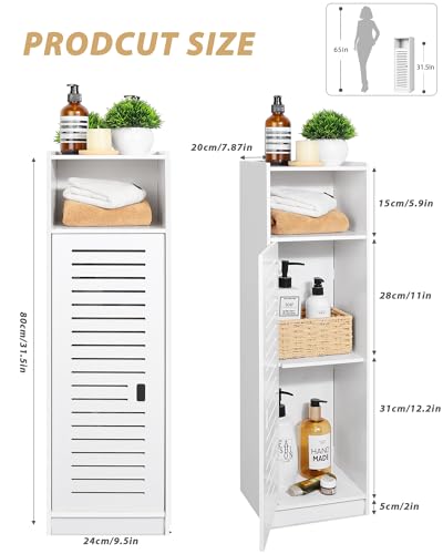 - Large storage capacity: Sized 80x20x24cm(HxDxW), this bathroom cabinet provides extra space to hold your daily essentials and keep your bathroom neat and organized.
