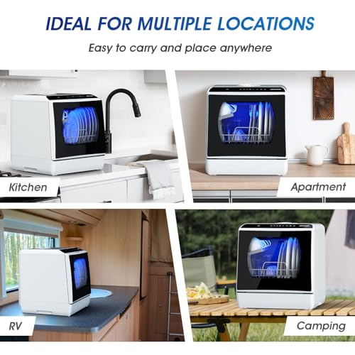 AIRMSEN Mini Table Top Dishwasher – Upgraded 6 Programs Portable Countertop Dishwasher No Plumbing with 2 Water Supply Modes for Kitchen Apartment Outdoor – with Baby Care Mode