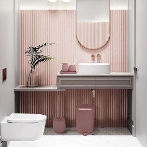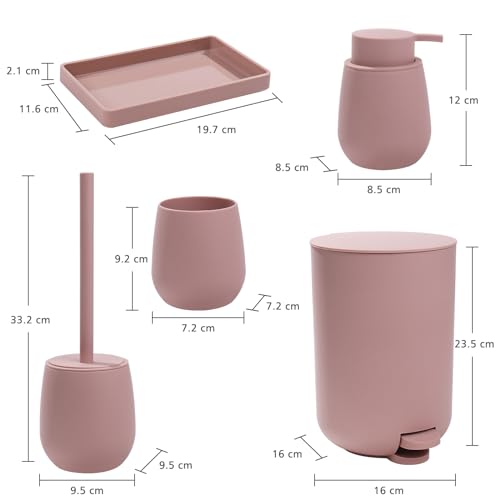 - High-quality material: this bathroom set pink matt is made of durable ABS resin, which ensures that there is no smell. Bathroom set features an elegant matte rubber lacquer finish that provides a soft feel and adds a touch of sophistication to your bathroom.