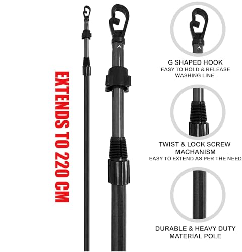 - TELESCOPIC DESIGN: Extending clothes prop is ideal to extend the height of any traditional clothes line. The strong clothes line prop will help to support your washing line on windy days or when you have heavy laundry.