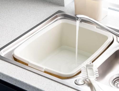 AMK® Addis 12L Rectangular Bowl Linen Colour BPA Free Washing Up Bowl with Lifted Base for Sinks