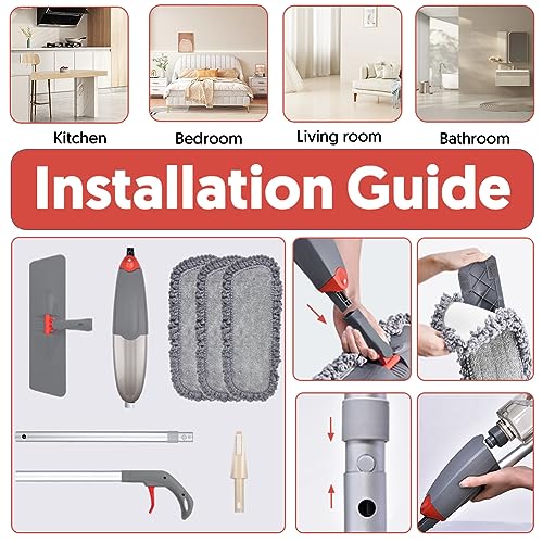 - Wall Mounted Spray Floor Mop – The top of microfiber dust mop handle has metal ring, so you could hang the wet mop on the wall. You don't need to make more room for the floor mop anymore. These spray mop with washable pads can clean your kitchen, hardwood, marble, tile, laminate, or ceramic floors quick, easy, and safe