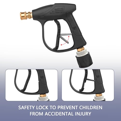 - 【Safety Design】 Aolawco car wash attachment is equipped with a safety locking handle to prevent accidental spraying. The ergonomic handle design is easier to operate and more efficient, and the safety trigger lock prevents accidental spraying.