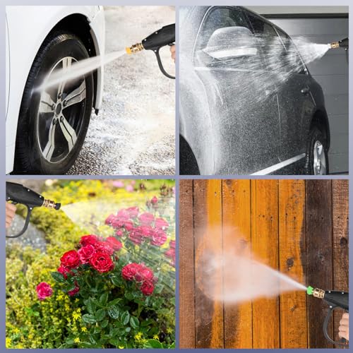 - 【High Grade Material】 4350 PSI high pressure hose attachment can easily wash away the dirt on the surface of the car and is also a perfect tool for cleaning the yard, the main body of the high pressure washer gun is made of engineered plastic with high grade stainless steel interior and a comfortable, ergonomic handle.