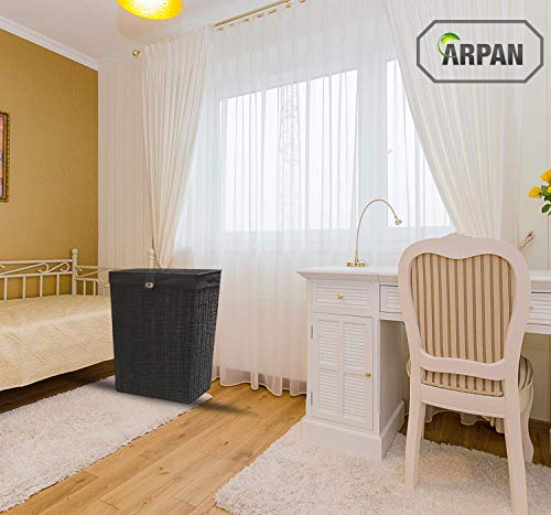 Arpan Resin Laundry Clothes Basket with Lid, Lock and Lining Storage Basket with Removable Lining (Black – Large)