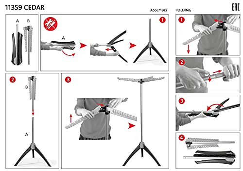 art moon Cedar Sturdy Foldable Clothes Airer, Clothes Hanger Stand, Drying Rack Indoor/Outdoor, Max Capacity 22kg or 63 Hangers, Easy Assembly, Grey