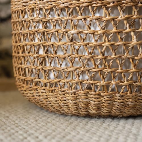 • ARTISANAL SEAGRASS LAUNDRY BASKET: Handwoven by skilled artisans in Bangladesh, this seagrass laundry basket blends natural beauty with everyday functionality. Its intricate weave and warm tones bring timeless charm to any bedroom, bathroom, or utility room.