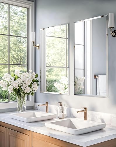 - Modern Sleek Frameless Look – Experience a clean, uncluttered aesthetic with this plain frameless mirror, designed to fit seamlessly as mirrors for over sink or mirror over bathroom sink installations, Its frameless design and polished edges blend effortlessly with any décor, from modern minimalist to classic cottage, adding elegance to your space