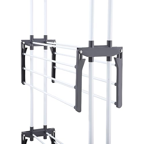 4-TIER CLOTHES AIRER – The 4-tier drying rack has 2 side wings, each equipped with 7 hooks. On each level, there are 8 posts, allowing you to hang longer clothing like suits and dresses. Great for drying various clothing like towels, socks, shirts, shoes, and pants.
