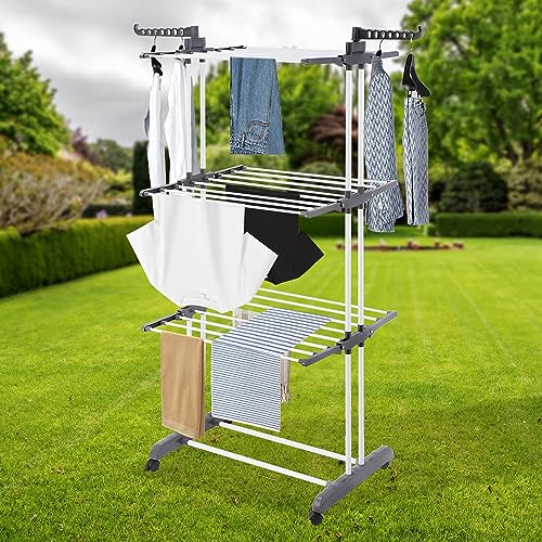 • STURDY AND DURABLE – Built to last, our clothes airer features a sturdy construction that can withstand the weight of wet clothes. Made from high-quality galvanised stainless steel and plastic material, it resists rust and is designed to serve you for years to come.
